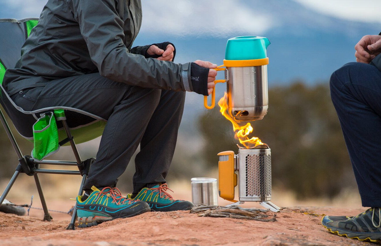The CampStove 2 is a portable camping stove that cooks meals and boils water in minutes while charging your devices.